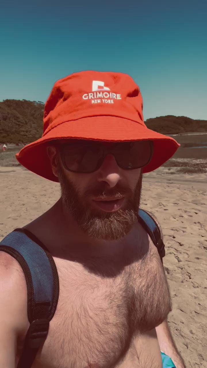 Featuring the classic summer look from Vincent's 2025 Boy Beach edition. The #UnitedByVanity bucket hat is a must have to be seen at your next summer rendezvous. The Founders Bright Orange Bucket Hat is embroidered, 100% cotton twill that keeps you cool and the sun out of your face. Relaxed fit. Vincent is wearing a large.